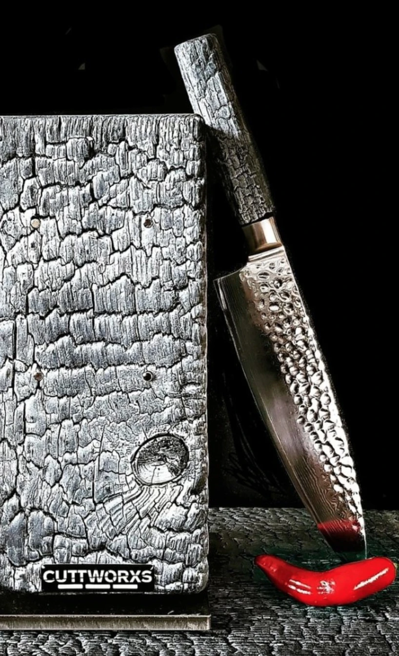 Geboren in het vuur! Cuttworxs Evolution Koksmes, vervaardigd van damast staal.