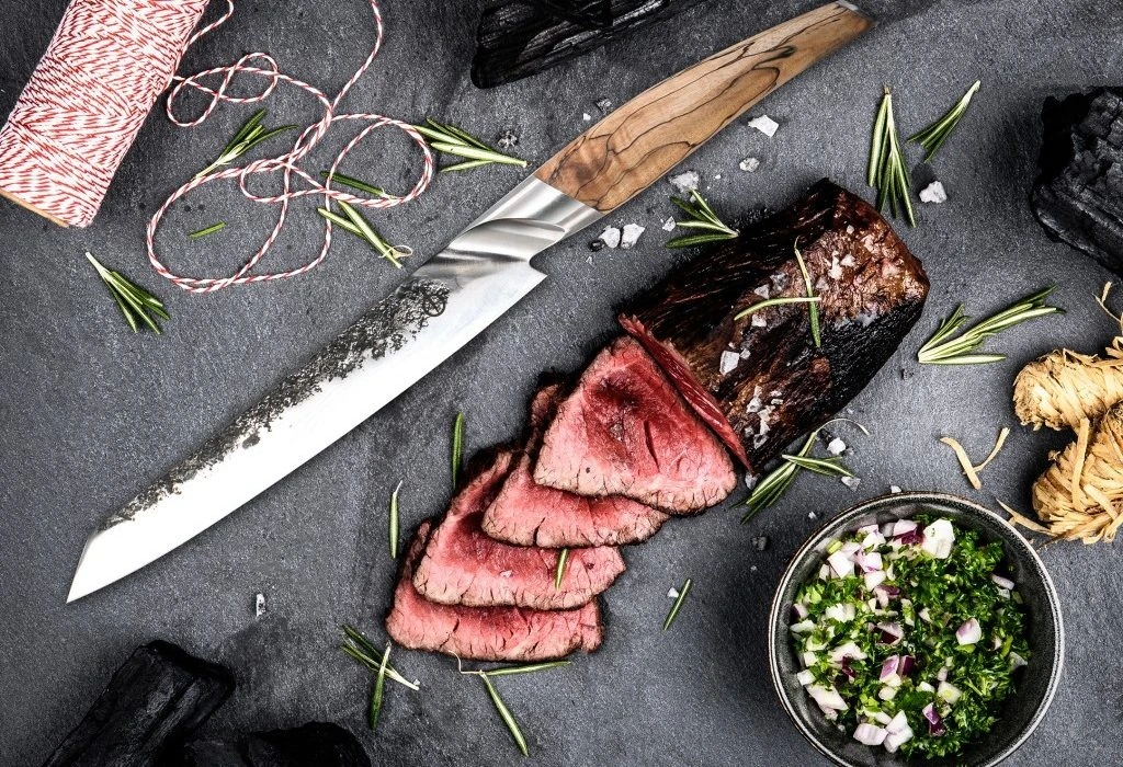 Het mes kan perfect gebruikt worden voor het afsnijden van grote stukken vlees. Perfect tijdens een goede BBQ