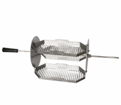 De Carrousel is gemaakt van RVS en heeft 3 plateau’s en past op kamado/ bbq’s vanaf 21 inch of groter. De plateua’s / mandjes draaien mee met de roterende beweging van de rotisserie. Hij is erg makkelijk te monteren op de rotisserie, je schuift het over de spit en schroeft hem vast met 2 vlinderschroeven.Â