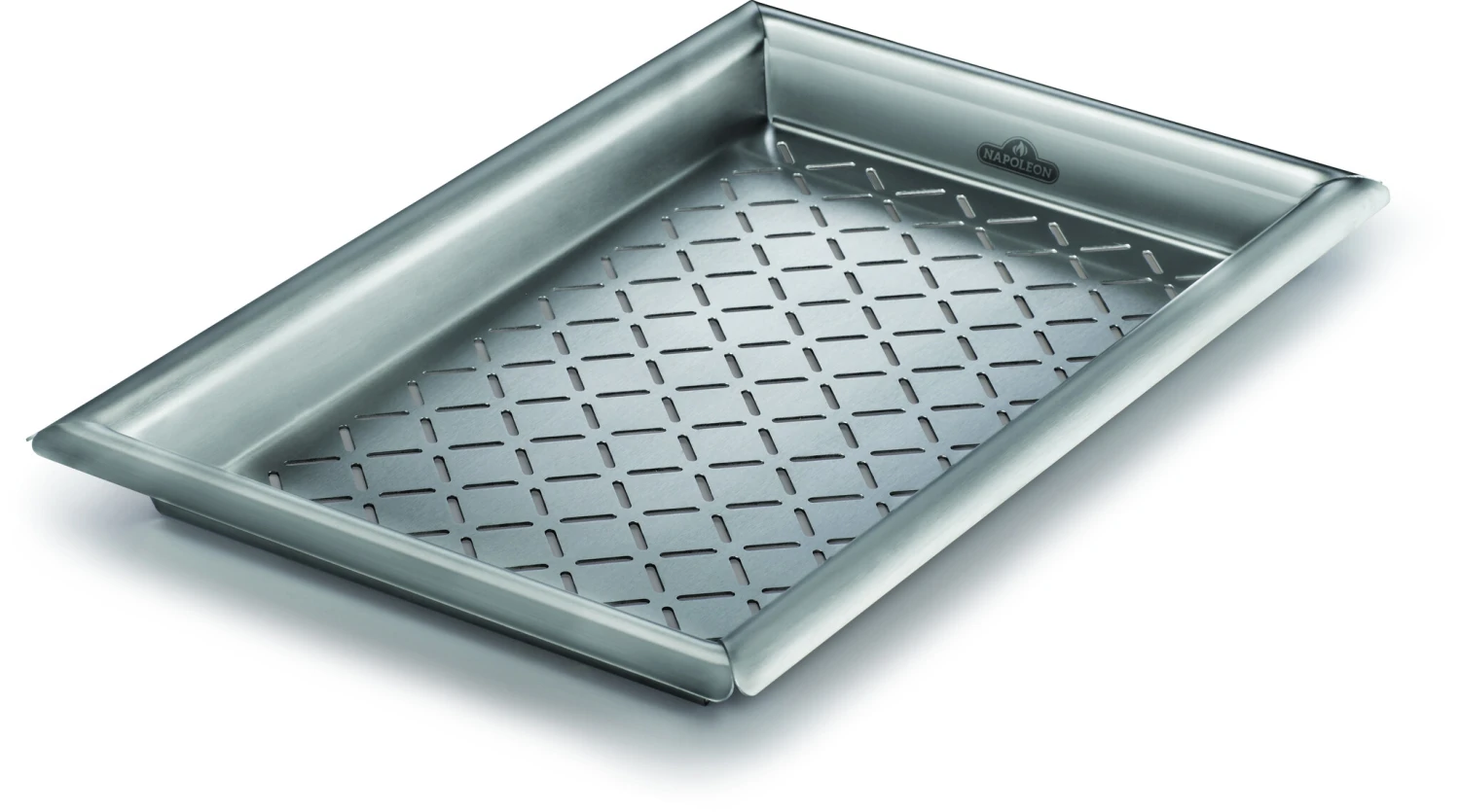 Groenten en andere bijgerechten bereidt u met de RVS groentekorf. Deze grote RVS groentekorf is voorzien van gleuven die rook doorlaten. Speciaal ontworpen voor het grillen van stukjes groenten, aardappelen, zeevruchten en andere gerechten die vaak door de grillroosters heen vallen of bij elkaar gehouden moeten worden. De hoge zijkanten zorgen ervoor dat er niets ontsnapt terwijl u een heerlijke maaltijd bereidt. De handvaten zorgen ervoor dat u de bak gemakkelijk kunt verplaatsen.