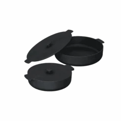 De OFYR Cast Iron Casserole set bestaat uit twee strak vormgegeven gietijzeren pannen met diameters van 21 cm en 26 cm. De pannen zijn geschikt om op de OFYR kookplaat gebruikt te worden maak kunnen ook in de oven of op de BBQ/ kamado. De pannen zijn voorzien van goede warmteverdeling waardoor ze geschikt zijn voor de bereiding van allerlei gerechten.